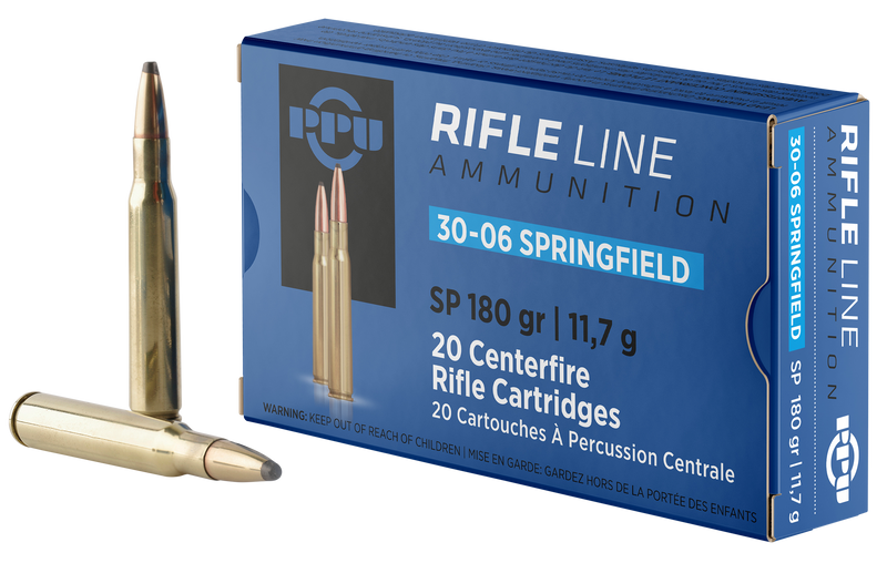 PPU 30-06 Springfield 180gr Soft Point Rifle Ammunition, 20 Round Box - PP30063