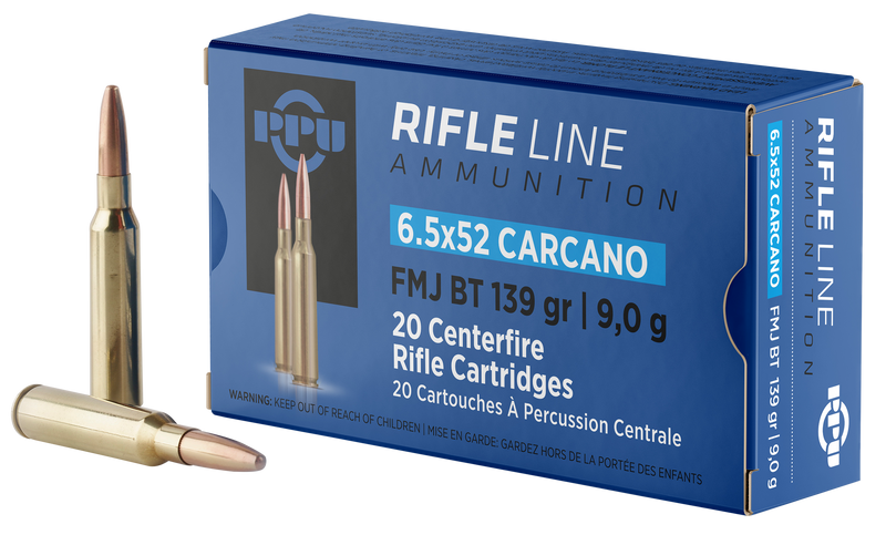 PPU 6.5x52mm Carcano 139gr Full Metal Jacket Boat Tail Rifle Ammunition - PP6CF