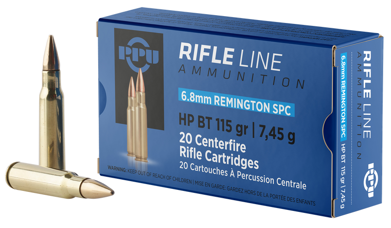 PPU Standard Rifle 6.8mm Rem SPC 115gr HPBT Ammunition, 20/Box - PP68H