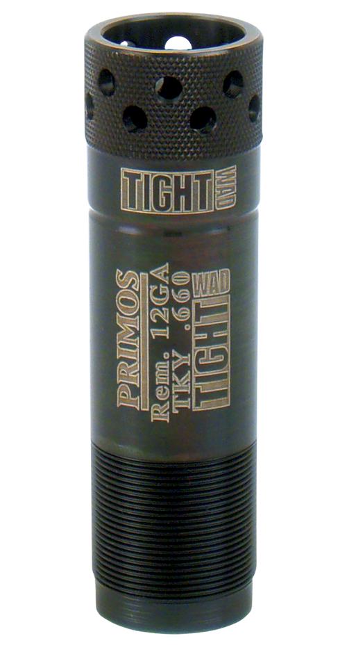 The Primos TSS JellyHead is a ported turkey choke tube designed for 12 gauge shotguns with Remington Rem Choke compatibility. This steel construction choke delivers a .650 inch constriction diameter optimized for turkey hunting applications. The extended ported design helps reduce recoil while maintaining shot pattern performance.