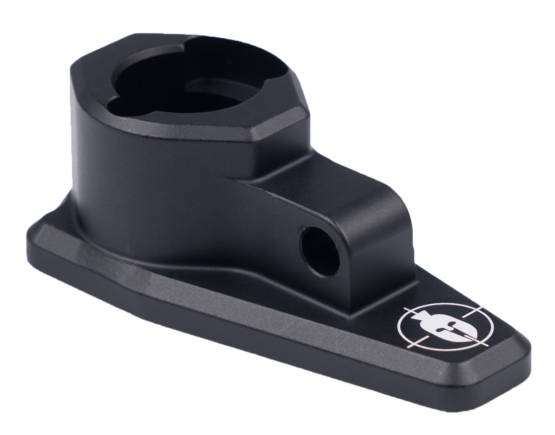 Lightweight aluminum rifle adapter that enables quick attachment and detachment of Primos Spartan and MagnaSwitch tripod systems to hunting rifles with removable sling swivel studs. Weighs just 20g and includes multiple screw options and three synthetic plates to accommodate different stock profiles, installable in under two minutes. Features anodized finish and waterproof construction with lifetime manufacturer warranty.