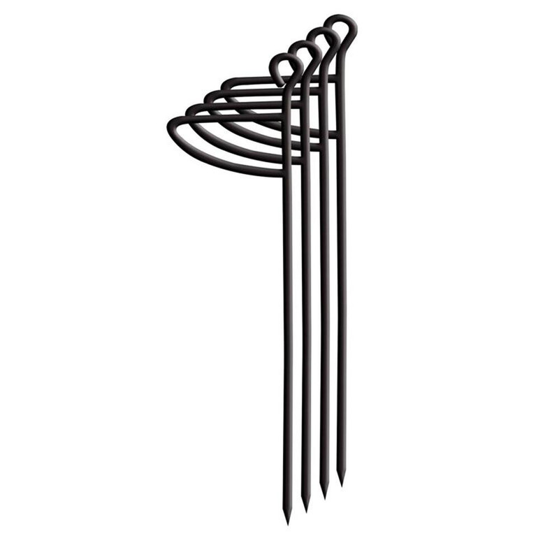 High-grade steel ground blind stakes with sharp points designed to penetrate tough ground conditions. This 4-count pack weighs 1.2 lbs total and is manufactured in the USA. Ideal for securing ground blinds during hunting season.