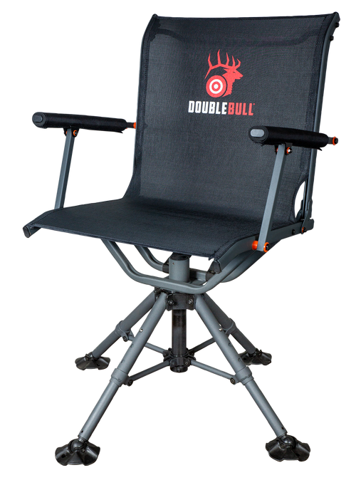 A three-legged folding stool designed specifically for use in ground blinds, engineered at the optimal height for viewing through blind window openings. The tri-stool design provides superior range of motion and comfort compared to standard chairs, preventing blood flow restriction and allowing better mobility for hunters. Weighs approximately 6.5 lbs with steel construction and camo finish.