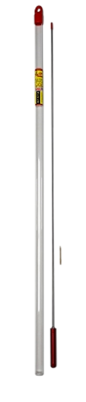 This one-piece micro-polished stainless steel cleaning rod is designed for .17 caliber rifles and measures 32.5" in length with #5-40 threading. It includes a brass jag and plastic storage tube for convenient transport and storage. The rod features a swivel handle and spear tip for efficient bore cleaning.
