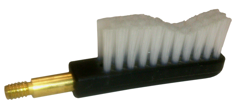 Universal multi-caliber gun brush with nylon bristles designed to remove carbon, lead, plastic fouling, and powder residue from firearm bores. Features a #8-32 thread connection for compatibility with standard cleaning rod systems. Includes nylon and plastic construction for effective yet non-abrasive cleaning.
