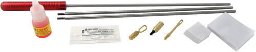 This versatile universal cleaning kit is designed for firearms ranging from .22 caliber pistols to 12 gauge shotguns. The kit includes modular rod sections (2x 12", 1x 6.5", 1x 3"), a locking swivel T-handle, and shotgun accessory adapter, with working rod length adjustable from 3" to 33.5". Packaged in a hard case containing 17 pieces and includes solvents for comprehensive firearm maintenance.