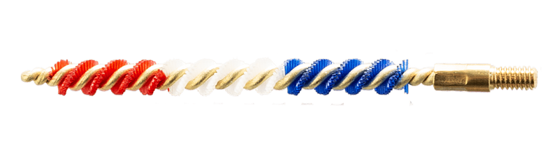 Nylon bristle bore brush with brass core designed for cleaning .22, .223, and 5.56mm rifle calibers. Features #8-32 thread connection for standard cleaning rod compatibility. Effectively removes fouling and carbon buildup from rifle barrels.