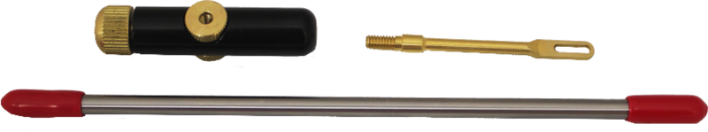 This universal pistol cleaning kit is designed for calibers .22 through .45 and features a swivel T-handle with a 6.5 inch rod section and brass patch holder. The kit comes packaged in a reusable clamshell case for convenient storage and transport.