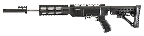 This is a conversion stock designed to fit the Ruger 10/22 rifle, constructed from carbon fiber-filled polymer for durability. It features a 6-position adjustable length of pull (10.25"-14.25"), free-floating barrel design, storage compartment, and requires no gunsmithing for installation. The stock mimics the look and feel of an M4 carbine and includes a tactical magazine release.