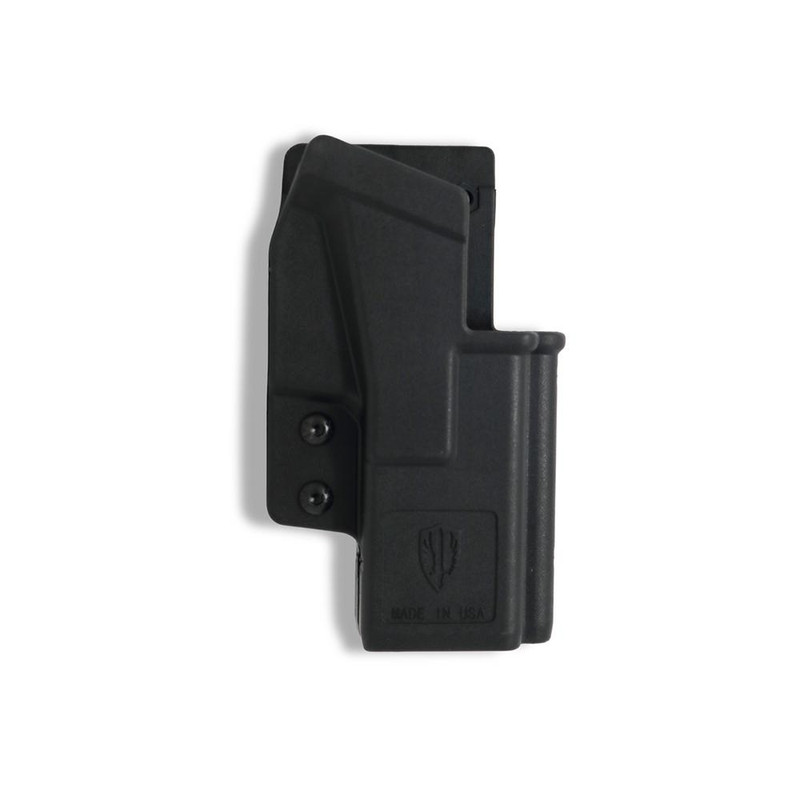 This outside waistband holster and integrated magazine carrier is designed to fit Glock 17 and 22 pistols. Constructed from durable DuPont Zytel-based polymer, it features a right-hand draw and is made in the USA with a lifetime manufacturer defect warranty.