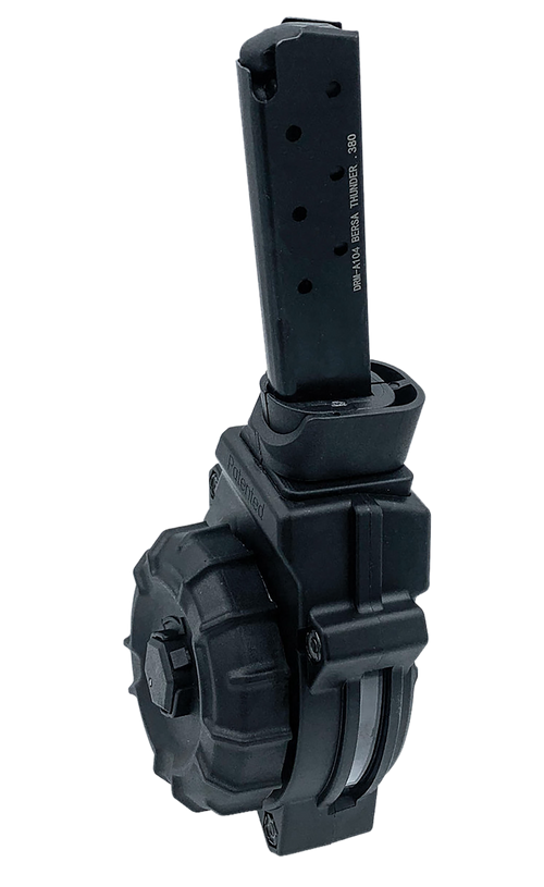This ProMag BRA01 is a 7-round detachable magazine chambered in .380 ACP, designed to fit Bersa Thunder 380, Firestorm, 383A, and Series 95 pistols. Constructed from heat-treated blued steel with a polymer follower and base plate, it features a chrome-silicon spring for reliable feeding and durability.