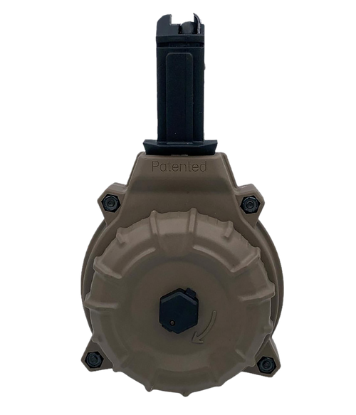 This is a 50-round drum magazine in 9mm Luger designed specifically for the CZ Scorpion EVO 3 platform. The drum housing is constructed from DuPont Zytel polymer with heat-treated carbon steel feed lip reinforcement, an injection-molded follower, and heat-treated stainless steel spring for reliable feeding. Made in the USA.