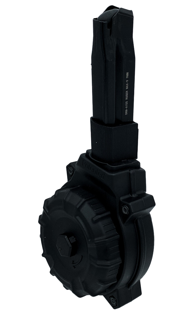 ProMag DRMA100 is a 50-round drum magazine chambered in 9mm, designed to fit the Ruger Max-9 pistol. Constructed from black polymer material, this high-capacity magazine measures 14.5" x 6.7" x 3.1".