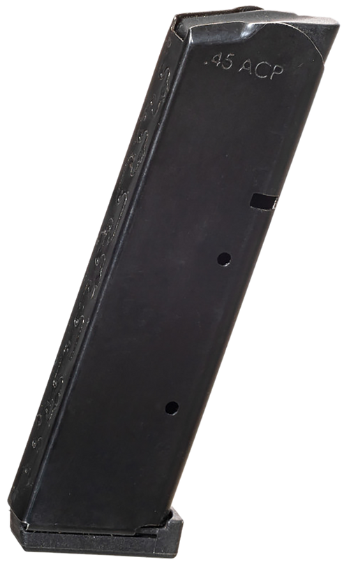 This ProMag magazine loader is designed for single-stack .45 ACP 1911-style magazines, including Colt 1991 Series models. Constructed from durable black polymer, it helps load rounds into magazines with reduced hand fatigue. The loader features a compact design with dimensions of approximately 8.1" length × 3.1" width × 0.6" height.