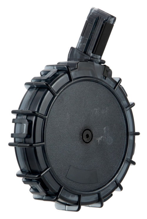 This 30-round drum magazine is designed for the Marlin 795 .22 LR rifle and features a durable polycarbonate construction with translucent smoke finish. The magazine includes an injection-molded follower and heat-treated chrome silicon wire spring, and is made in the USA.