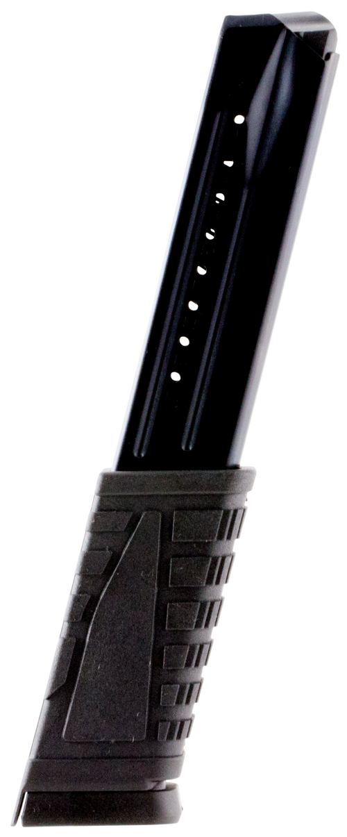 Extended 32-round magazine for Springfield Armory XD pistols in 9mm Luger. Constructed from heat-treated blued steel with a molded polymer follower and base plate, featuring a chrome-silicon wire spring for reliability. Overall length is 9 inches.