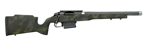 The Elevation MTR 2.0 is a 6.5 PRC bolt-action rifle featuring a 20" match-grade carbon fiber-wrapped barrel with 1-in-7.5 twist rate and 5/8x24 threaded muzzle. Built on a Zermatt Arms Origin action with a carbon fiber midnight camo stock, this rifle weighs 6 lbs. 7 oz. and comes with Proof Research's Sub-MOA accuracy guarantee.