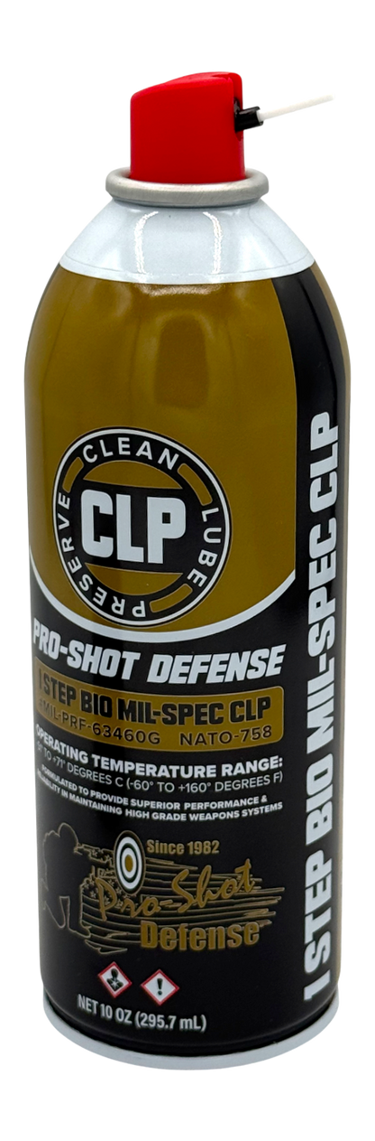Bio-based Mil-Spec CLP (Cleaner, Lubricant, Protectant) designed for firearm maintenance and care. This 10-ounce bottle provides cleaning, lubrication, and corrosion protection in a single product formulation. Suitable for routine gun cleaning and maintenance applications.