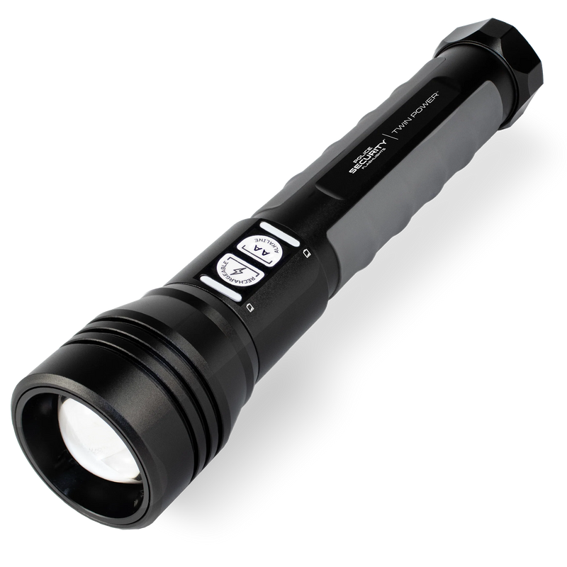 The PSF Twin Power 4000 Lm is a high-output tactical flashlight designed for law enforcement and professional use. Featuring 4000 lumens of brightness, this dual-power flashlight is built for tactical applications requiring reliable illumination. The durable construction makes it suitable for demanding outdoor and professional environments.