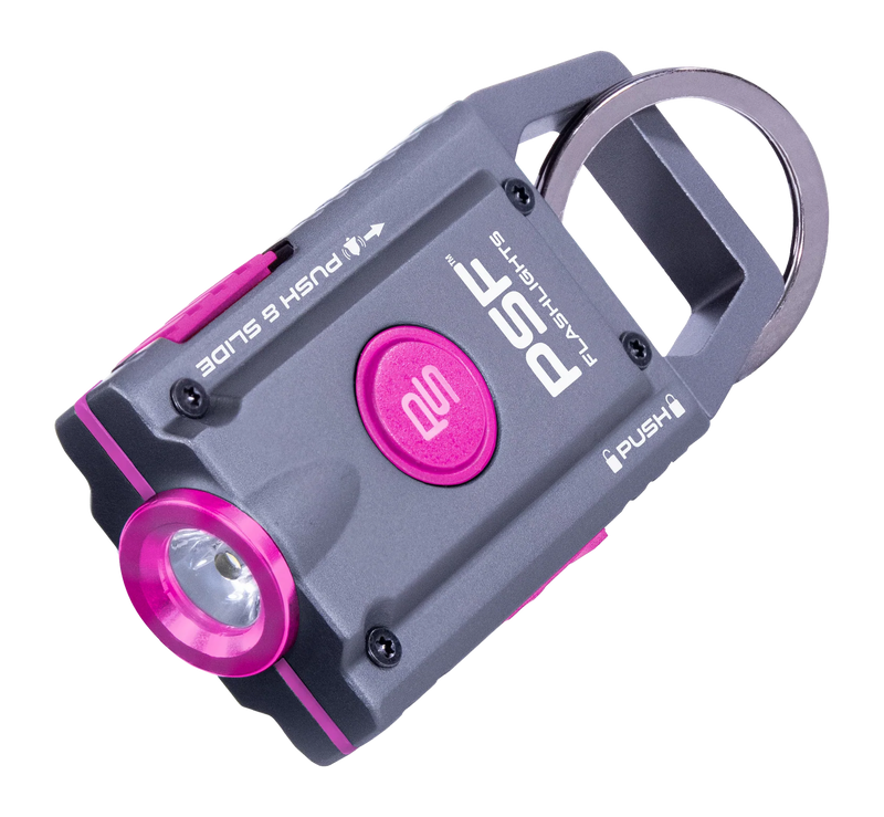 The PSF Alert 120 is a compact flashlight producing 500 lumens of output, designed for everyday carry and tactical use. Its pink finish offers high visibility while maintaining practical lighting performance. This accessory is suitable for law enforcement, outdoor activities, and personal security applications.