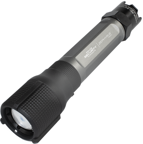 The PSF Zephyr Tactical flashlight delivers 550 lumens of brightness with three operational modes for versatile lighting needs. Powered by two AA batteries, this white light tactical flashlight is designed for outdoor and tactical applications.