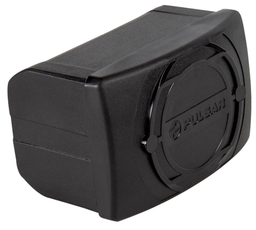 Rechargeable lithium-ion battery pack designed to power Pulsar thermal and night vision devices including DigiSight Ultra, DigiSight Forward, Helion, Trail, Krypton, Krypton 2, and Accolade models. Features 6,400 mAh capacity at 3.7 volts with approximately 5-hour charge time. Includes protective cover.