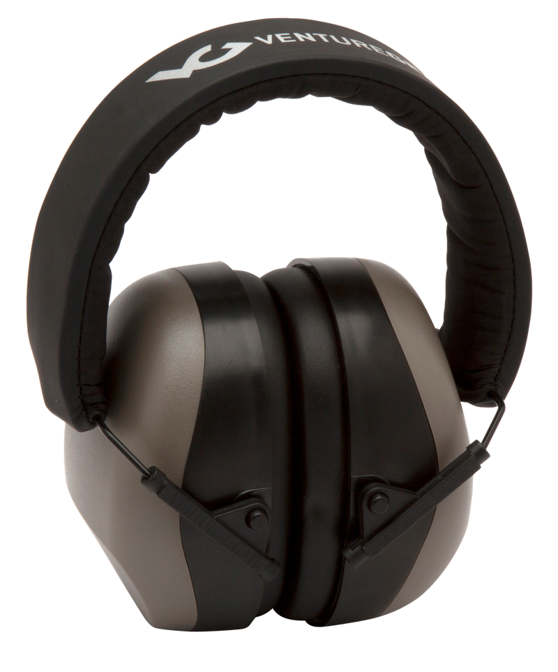 Over-the-head passive earmuff with soft foam ear cups and fold-away padded headband, offering NRR 26 dB (SNR 32 dB) noise reduction. Provides NRR 37 dB when worn with earplugs. Low-profile design suitable for shooting and industrial hearing protection.