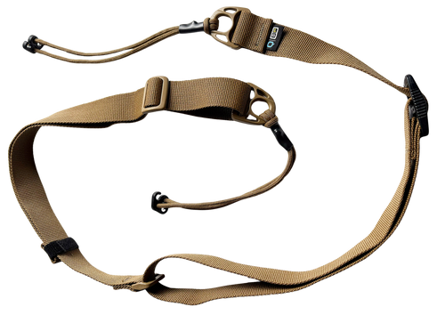 The Q G Sling is a lightweight, minimalist rifle sling made from nylon material available in Black Multicam finish. It features Q's proprietary Sling Devil attachments that eliminate the need for bulky QD attachments or knots, with 61 Sling Devils weighing less than a single QD attachment and cup. The sling measures 2" wide and is designed for easy mounting and quick adjustments on rifle platforms.
