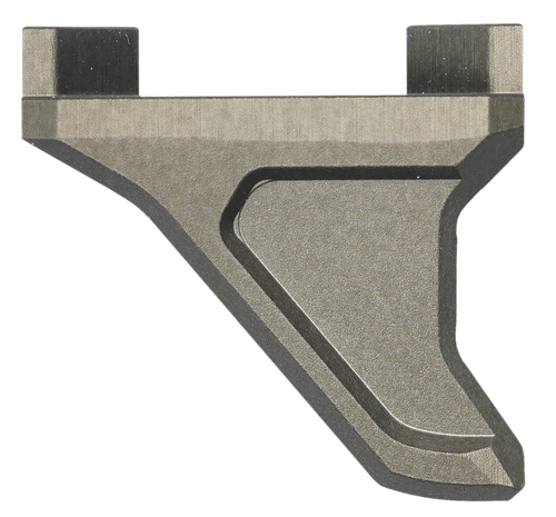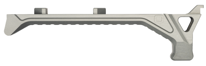 The Q LLC Deluxe Q-Sert Hand Stop is a 9.2" aluminum accessory designed for AR-platform rifles using M-LOK or KeyMod rail systems. Constructed from silver anodized aluminum, this hand stop provides a secure gripping point and directional reference for shooter control. The compact design (3.2" wide, 0.6" tall) mounts directly to compatible handguards via two-slot configuration.