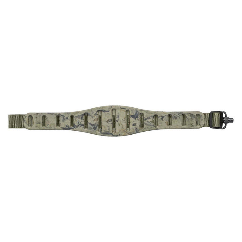 The Quake Claw Contour is a 2-point rifle sling featuring a molded non-slip pad that provides approximately 1/2 inch of stretch to distribute firearm weight across the shoulder for increased comfort. The unique gripping action of the pad keeps the firearm securely in place, eliminating shifting and rolling. Includes QD (quick detach) flush cup swivels for easy attachment and removal.
