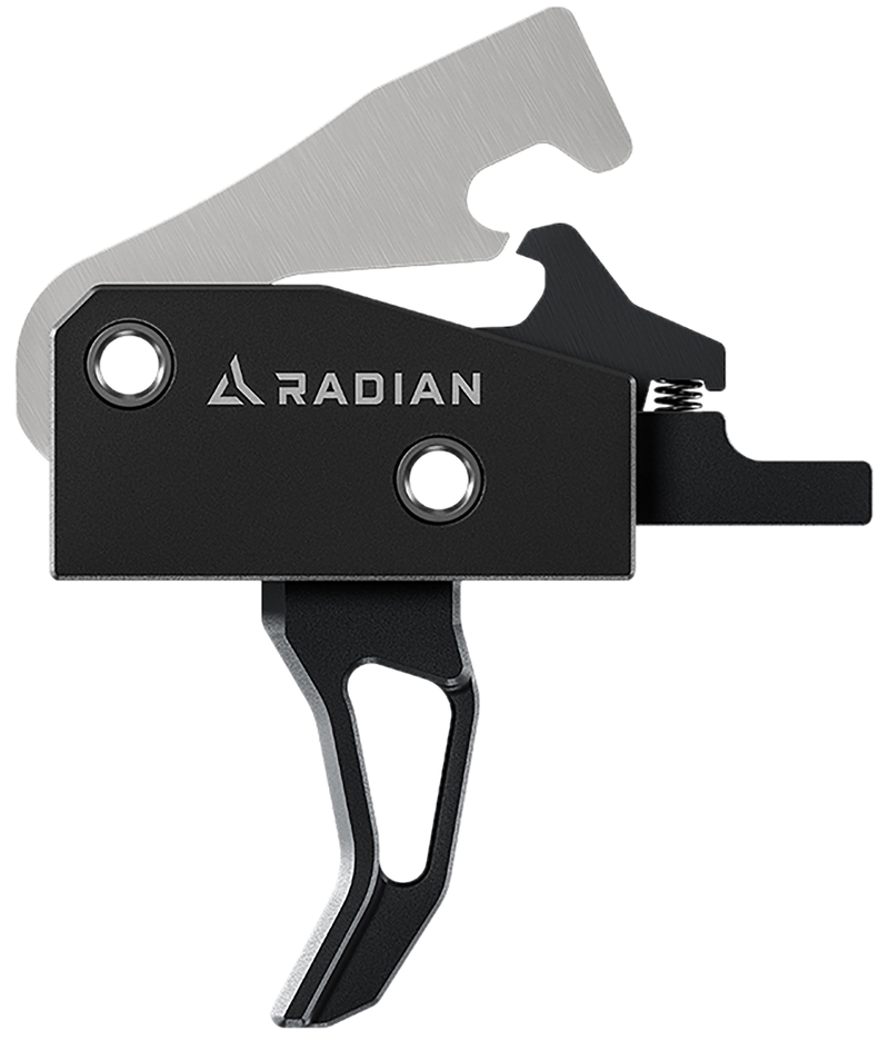 The Radian Vertex is a single-stage AR-platform trigger featuring a curved trigger bow positioned forward to enhance straight-back trigger breaks and reduce diagonal pull. Constructed from 1144 carbon steel with a crisp 3.5-4 pound break weight and short reset. Drop-in compatible with AR-15 rifles and features a black trigger with silver hammer.