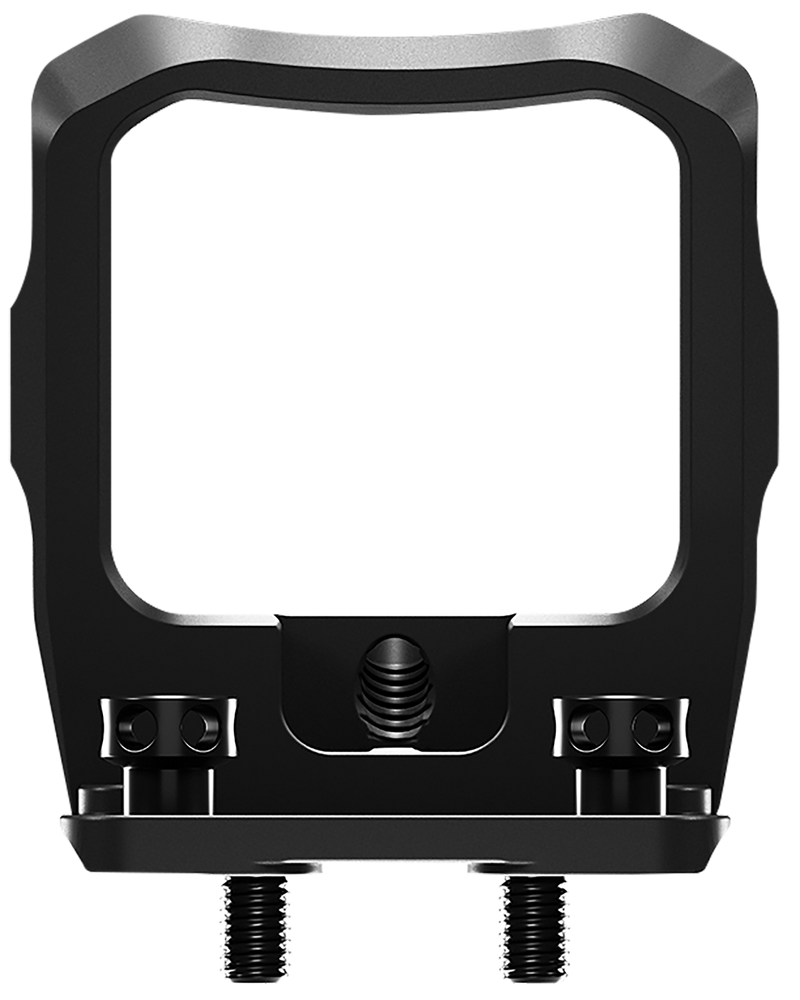 The Radian Guardian is an optic guard mount designed for Glock MOS pistols and compatible with the Trijicon RCR footprint. It features an anodized aluminum construction in black and provides protection and secure mounting for compatible red dot optics. Dimensions are 9.2" x 5.1" x 2.0".