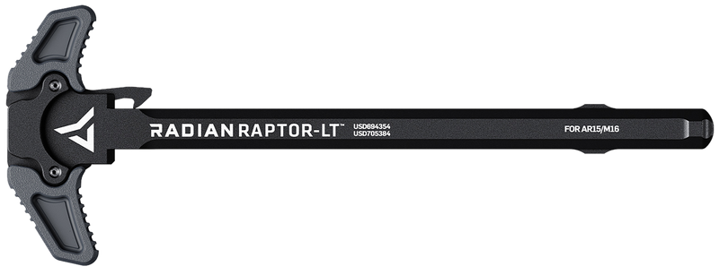 The Radian Weapons Raptor LT is a lightweight ambidextrous charging handle designed for mil-spec AR-15/M16 platforms. Constructed from 7075-T6 aluminum with polymer overmold, it measures 10.1" in length and features a low-profile design for enhanced ergonomics and reduced snag potential.
