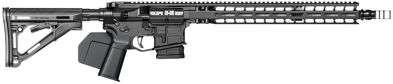 Semi-auto carbine chambered in 223 Wylde with a 16" match grade stainless steel barrel and 10+1 capacity. Features a Radian billet aluminum receiver, M-Lok handguard, ambidextrous controls, Radian Vertex trigger, optic-ready configuration, and Dead Air Keymo flash hider. CA-compliant configuration with fixed Magpul CTR stock.