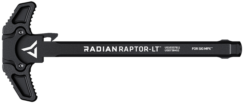 The Radian Weapons Raptor LT is a lightweight ambidextrous charging handle designed specifically for the Sig MPX platform. Constructed from aluminum with polymer overmold, it features compact dimensions (10.3" length, 3.7" width, 0.8" height) for enhanced ergonomics and ease of manipulation from either side of the weapon.