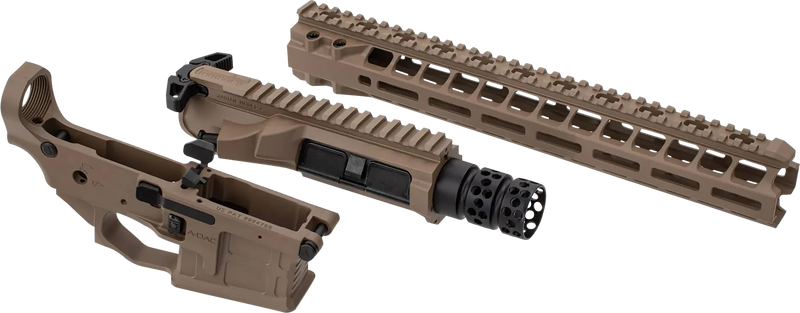 The Radian Weapons R0414 is a billet upper and lower receiver set builder kit chambered in 5.56 NATO/.223 Remington with ambidextrous controls. It features a 14" M-LOK handguard finished in Flat Dark Earth Cerakote and includes a Radian Talon ambidextrous safety and hammer pin. This semi-automatic AR-15 platform kit is designed for builders who want quality billet components with modern ergonomic features.