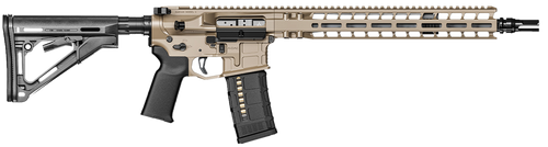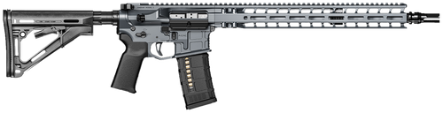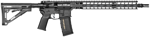 Semi-auto rifle chambered in 223 Wylde with a 16" match-grade stainless steel barrel and 30+1 capacity. Features an adjustable two-stage match trigger, ambidextrous safety and controls, carbon fiber muzzle device, and Magpul collapsible stock. Optic-ready platform with aluminum receiver and weighs approximately 6.5 lbs.