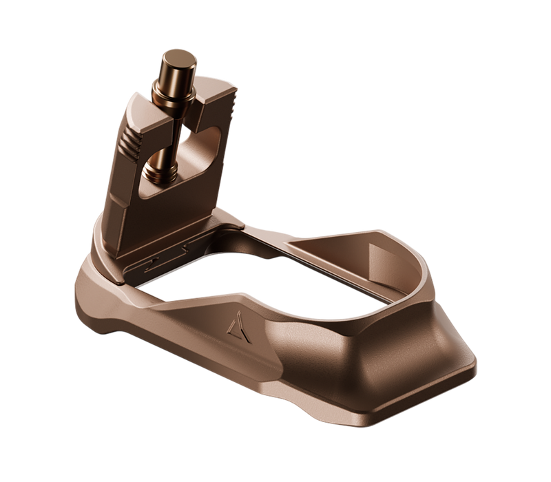 This magwell accessory fits Glock 17, 34, 45, and 47 Gen5 handguns and features an anodized bronze aluminum construction. The Anchor + Magwell design improves magazine seating and ergonomics for faster reloads.