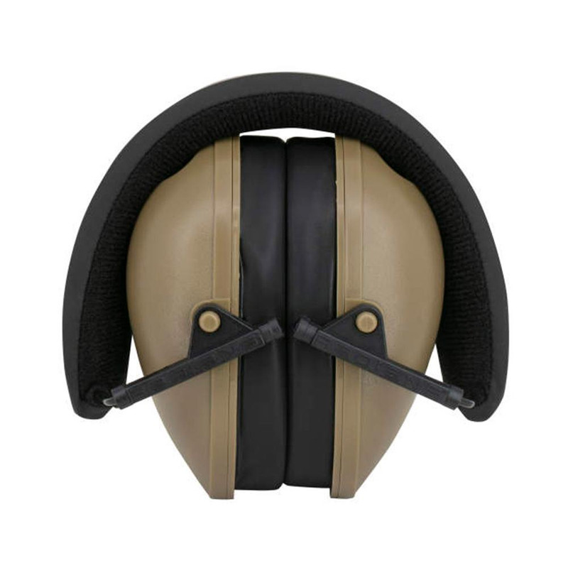 Passive ear muff offering 21dB noise reduction with foam-filled cushion padding and adjustable headband for comfortable, lightweight hearing protection. Features a low-profile design with compact folding capability and moisture-wicking padded headband, designed to work well with safety glasses.