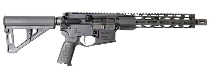 Semi-automatic AR pistol chambered in .300 Blackout with a 10.5" melonite-finished threaded barrel and black anodized aluminum receiver. Features an M-LOK handguard, Picatinny rail, and includes a 30-round magazine with pistol stabilizing brace.
