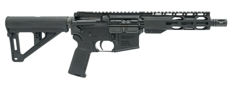 Semi-automatic AR pistol chambered in 5.56 NATO with a 7.5" barrel and 30-round capacity. Features a black anodized aluminum receiver with Picatinny rail, M-LOK handguard, threaded barrel, Magpul pistol grip, and pistol stabilizing brace. Includes one 30-round magazine.