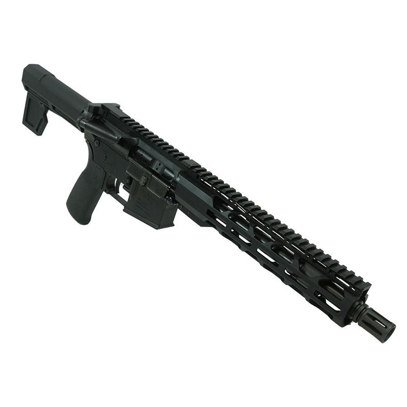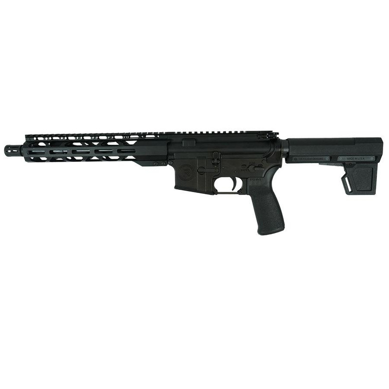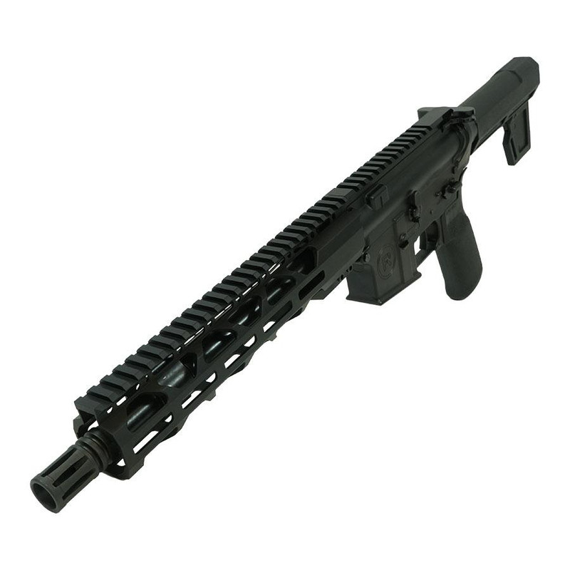Semi-automatic AR pistol chambered in 5.56 NATO with a 10.5" chrome moly vanadium barrel and 30-round magazine capacity. Features a 10" free-float RPR rail system for accuracy and accessory mounting, MIL-STD receivers, Picatinny optic-ready rails, and a Shockwave brace.