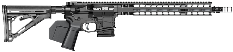 Semi-auto rifle chambered in 223 Wylde with a 14.5" match grade stainless steel barrel and 10+1 capacity. Features an optic-ready receiver, ambidextrous controls, Radian Vertex trigger, fixed Magpul CTR stock, and Dead Air Keymo flash hider. CA compliant configuration.