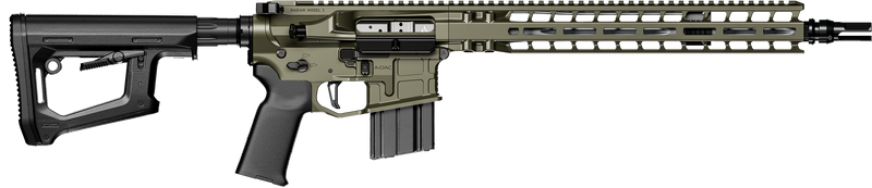 Semi-automatic AR-15 platform rifle chambered in 6mm ARC with a 14.5" pinned barrel (16" OAL). Features a Dead Air Flash Hider, Cerakote Olive Drab Green finish, and includes one 20-round magazine. This modern sporting rifle delivers precision performance in a compact, maneuverable package.
