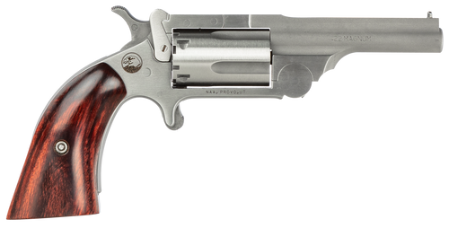 The NAA Ranger II is a convertible single-action mini-revolver chambered in .22 LR/.22 Magnum with a 2.5" stainless steel barrel, 5-shot capacity, and break-top design. Features a rosewood boot grip, bead front sight, and full ribbed barrel. This compact revolver weighs approximately 7.7-7.9 oz and has an overall length of approximately 5.98-6.0 inches, making it ideal for backup or pocket carry.