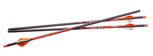 Premium match-grade arrows designed for Ravin crossbows, featuring 100% pure carbon construction with a 500 grain weight and lighted nocks for low-light visibility. These arrows offer .001" tolerance precision and include 2" offset vanes for consistent flight characteristics. The 3-pack includes lighted arrow nocks for enhanced tracking in field conditions.