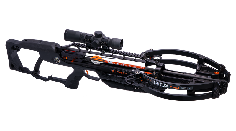 The Ravin R10X Pro is a high-performance crossbow delivering 420 feet per second with 156 foot-pounds of kinetic energy. It features Silent Cocking for stealth operation, an adjustable stock for custom fit, and a full-length scope rail for enhanced stability. The crossbow has a 12 lb draw force, weighs 7.4 lbs, and measures 32.5" in length.