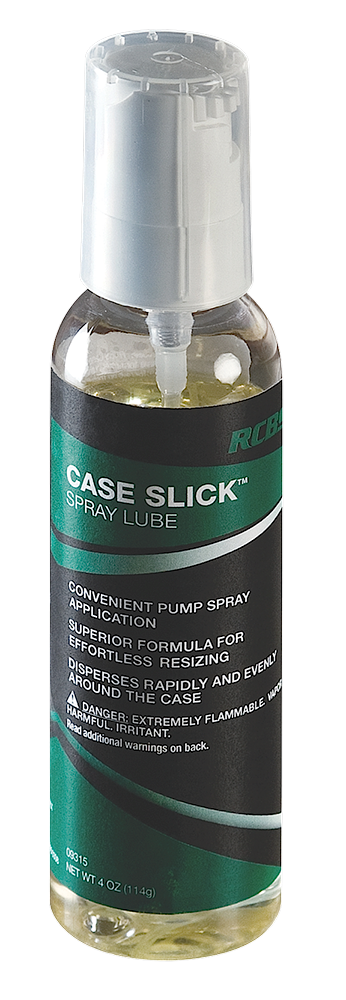 Case Slick is a spray lubricant formulated specifically for resizing and forming metallic rifle and pistol cases. Testing shows it reduces resizing force by 35-70 percent compared to other lubricants, making the reloading process easier on equipment and brass. Available in a 4.5 oz pump spray bottle.