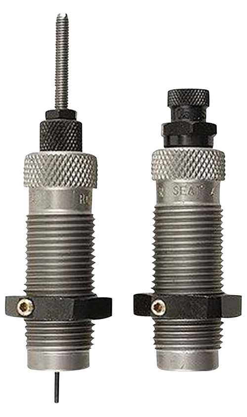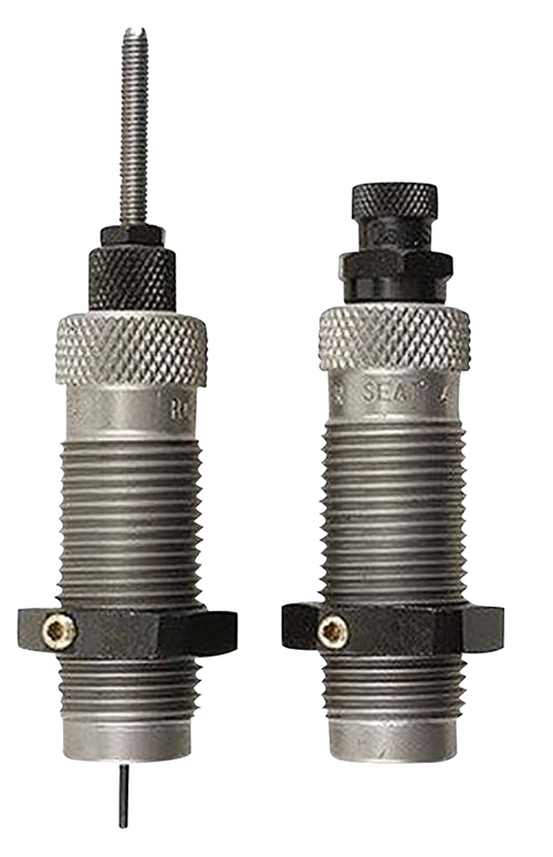 This two-die reloading set for .257 Weatherby Magnum bottleneck cases includes a Full-Length Sizer Die with Expander-Decapping Unit and a Seater Die with Bullet Seater Plug. The sizer die brings cases to SAAMI minimum dimensions, sizes the case exterior, de-primes, and expands the neck to accept bullets, with vents to prevent case damage from trapped air or excess lubricant.