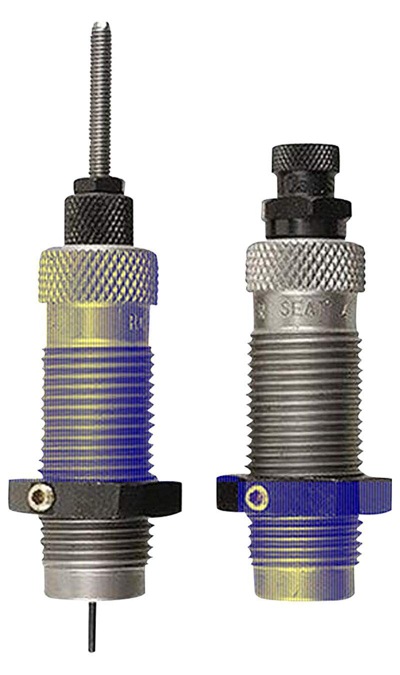 This two-die reloading set for .300 Winchester Short Magnum (WSM) bottleneck cases includes a Full-Length Sizer Die with Expander-Decapping Unit and a Seater Die with Bullet Seater Plug. The sizer die brings cases to SAAMI minimum dimensions, sizes the case exterior, de-primes, and expands the neck to accept bullets, while featuring vents to prevent case damage from trapped air. Headspace is held to minimum tolerances to ensure consistent reloading results.